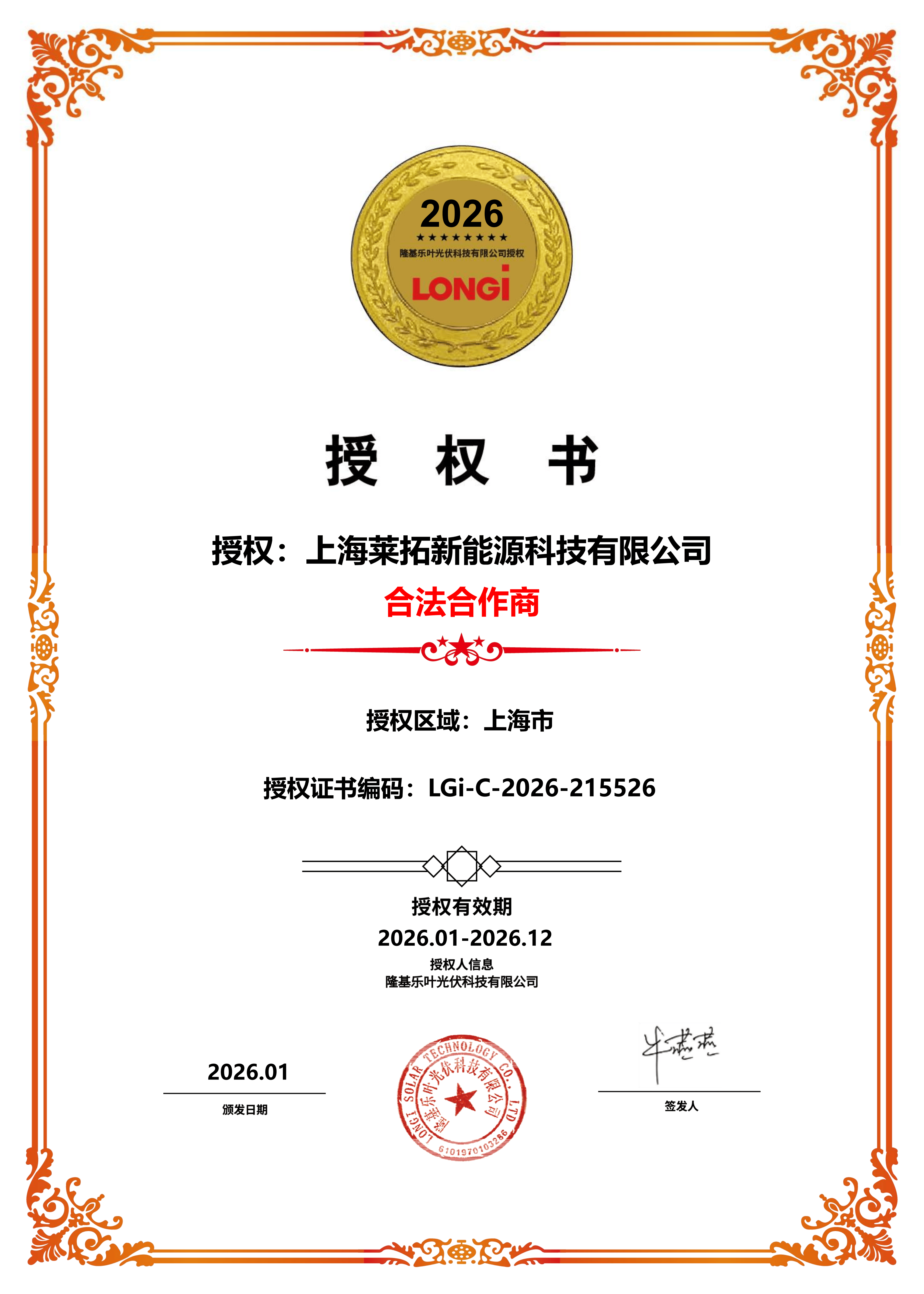 上海莱拓新能源科技有限公司作为隆基A级授权总包商,专注上海地区光伏工程,提供从方案到并网的一站式服务,用心做好每一个光伏项目。